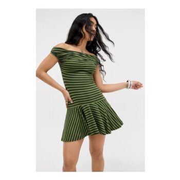 Motel Khaki Mausari Stripe Mini Dress