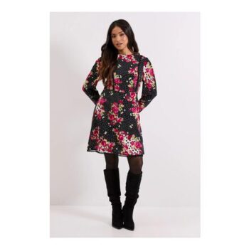Petite Patchwork Floral Lace Trim Detail Tie Back Printed Mini Dress