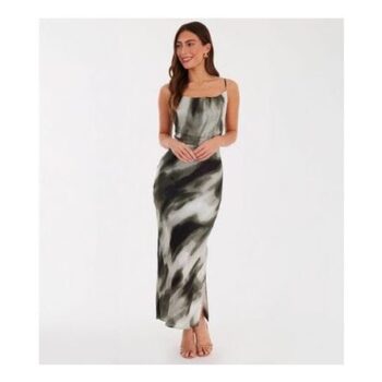 QUIZ Light Khaki Satin Marble Print Midaxi Dress