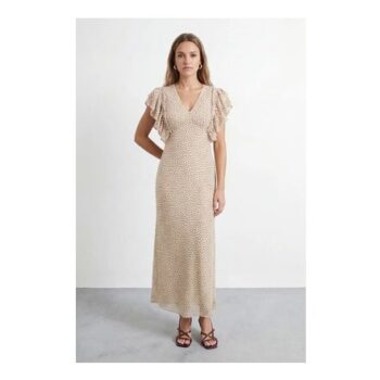 Save 50% on Polka Dot Print Ruffled Sleeve v Neck Maxi Dress at Warehouse
