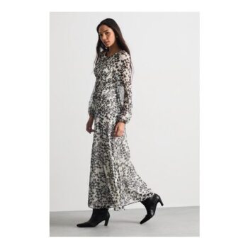 Save 50% on Shirred Bodice Detail Dogstooth Printed Midi Dress at Warehouse