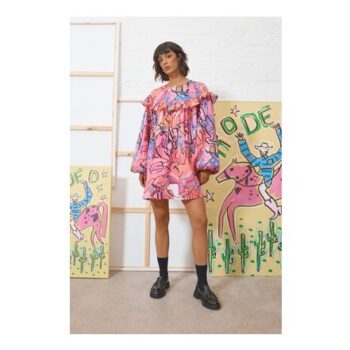 Tony Rodeo Cotton Frill Yoke Mini Smock Dress