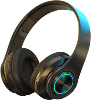 Bluetooth Headphones Over Ear Foldable Wireless Headset Colorful LED Lights Noise Cancelling Headphones Volume Control Wired and Wireless Modes Built in Mic for Phones TV PC