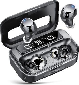 Digital LED battery display with 128-hour battery life: These wireless Bluetooth earbuds feature a digital LED display showing the remaining battery percentage for both the charging case and the earbuds. Each earbud delivers up to 8 hours of battery life per charge, while the 2600mAh charging case provides an additional 120 hours of usage. Equipped with USB-C fast charging technology, the Bluetooth earbuds fully recharge in just 2 hours. A quick 10-minute charge delivers up to 2
