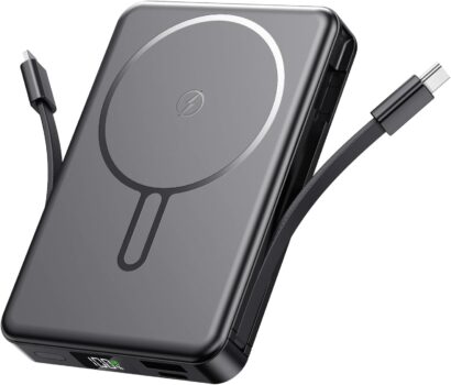 Built-in Cables & Strong Magnetic Hold: 10000mah power bank has built-in Type-C and Lightning cables, this portable charger means no more rummaging for leads. The upgraded magnetic grip locks securely onto the back of iPhone 17/16/15/14/13/12 Series, and works seamlessly with Samsang, Google, Pixel, and other Type-C devices.