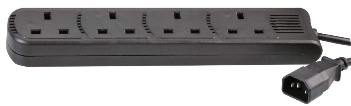 Pro Elec PEL01204 IEC C14 Plug to 4-Gang mains Extension Lead, Black, 1 m