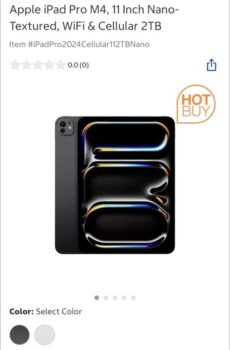 Apple iPad Pro M4, 11 Inch Nano-Textured, WiFi & Cellular 2TB at checkout