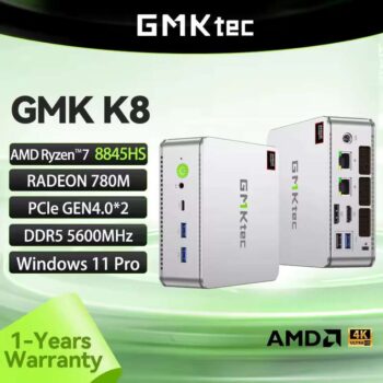 The GMKtec K8 Mini PC is a powerhouse of computing, designed to deliver high-performance computing in a compact form factor. With an AMD R7-8845HS processor, this mini PC is capable of handling demanding tasks with ease. The integrated AMD Radeon 780M graphics card ensures smooth visuals for gaming and multimedia consumption. The PCle GEN4.02 DDR5 5600MHz memory provides ample bandwidth for multitasking and running resource-intensive applications.