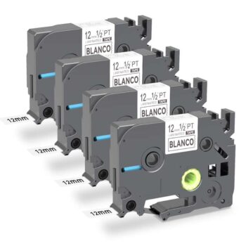 Package Included: 4-Pack Compatible with Brother Label Printer Tape 12mm Durable Label Tape, Color: Black on White, Width: 12mm (1/2 Inch), Length: 8m (26.2 Feet), Suit for Indoor and Outdoor Use