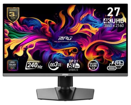 GAMING INTELLIGENCE – MSI GI software features OLED Care 2.0 to help prevent burn-in, AI supported software (Smart Crosshair), Console modes & Game Assistance KVM 1.0, PiP/PbP supported Features RGB illumination & a 4-way adjustable stand (VESA 100mm)