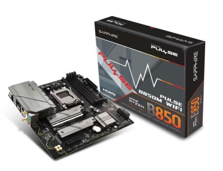 The Sapphire Pulse B850M WiFi is a Micro-ATX motherboard for AMD Socket AM5 (Ryzen 7000/8000/9000), featuring the B850 chipset, DDR5 support (up to 7600 MHz OC), and PCIe 4.0/5.0 storage. It offers a 721 phase power design, 2.5GbE LAN, Wi-Fi 6, Bluetooth 5.3, and robust cooling for mainstream gaming builds.
