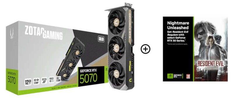 Zotac GeForce RTX 5070 Solid 12GB GDDR7 PCI-Express Graphics Card w/ NVIDIA Game Bundle – Resident Evil: Requiem Code