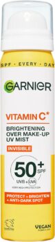 Garnier Vitamin C Brightening Over Make-Up UV Mist, Invisible Protection with SPF50 and Vitamin C. Protects, Brightens and Fights Appearance of Dark Spots, Cruelty free, Vegan – 75ML