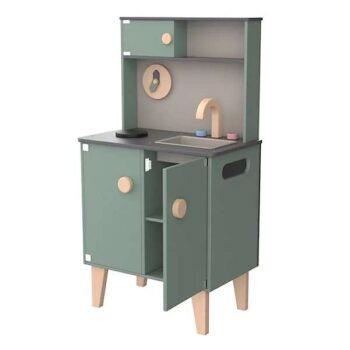 The Owl & Fox Little Chef Play Kitchen is a wooden kitchen set designed for children to enjoy pretend play.