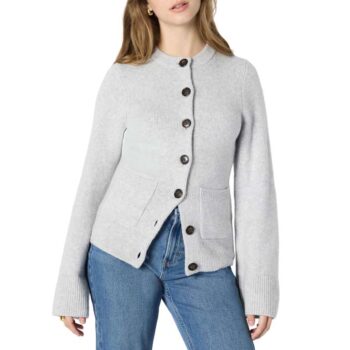 BELL SLEEVE CARDIGAN WITH SHAPED WAIST: Feminine silhouette with a defined waist and gently flared sleeve, can be layered and worn open or buttoned-up for a streamlined look