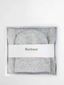 The Barbour Winona Beanie Hat & Scarf Gift Set in Light Grey is a cosy and stylish accessory set.