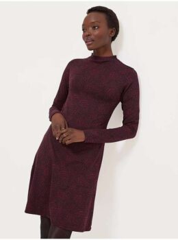 The Burgundy Snake Print Long Sleeve Skater Mini Dress is a stylish and versatile piece for any wardrobe.
