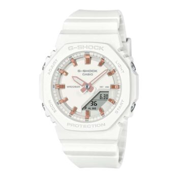 This sporty and fashionable watch gives you a unique feeling in every outfit This Analogue-Digital watch features a calendar function: Day-Date and is equipped with Stop Watch , Countdown , Worldtime , Alarm and a Light High quality White Plastic strap, measuring 19 cm in length and 21 mm in width, with a Buckle Case diameter: 40 mm,case thickness: 11 mm, case colour: White and dial colour: White Water resistant: 20 bars-Weight: 41 g The watch is delivered in an original gift box and has a warranty of 2 yearsDisplay Analog-Digital Watch Movement Type Quartz Special Features Alarm, Countdown, Light, Stop Watch, World Time Power Source Battery Powered Strap Type Plastic strap Water Resistance Depth 200 Metres Clasp Type Buckle Water Resistance Level Waterproof Closure Type Buckle