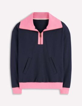 Spun from soft pure cotton, it has a retro-inspired front zip and modern colourblock design.