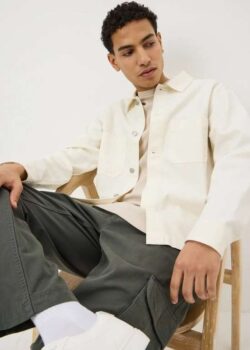 Relaxed and effortlessly versatile, the ecru-coloured shacket is the perfect layering piece for transitional styling. Crafted from lightweight canvas in a soft cream tone, this shacket combines the structure of a jacket with the ease of a shirt. Featuring a smart collar, full button-front fastening, and double chest pockets, its ideal for layering over tees or knitwear and makes a go-to staple for casual, everyday looks.