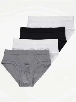 Product description 4 pack Elasticated waistband Black/white/grey colour options Brief cut