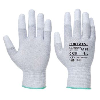 DESIGN AND FUNCTIONALITY: Anti-static. Fingertip dipped for precision handling and maximum ventilation. Smooth PU coating for increased abrasion resistance. Breathable seamless liner. ideal for intricate tasks. CE certified. Retail tag which aids presentation for retail sales. ANSI cut level A1. UKCA marked.