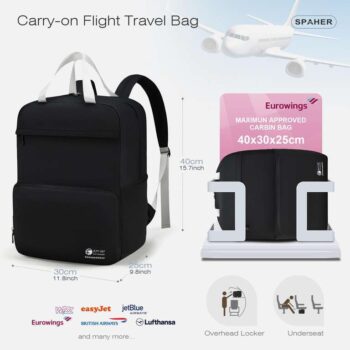 Eurowings Cabin Bags 40x30x25: SPAHER Hand Luggage travel Backpacks size is exactly the maximum size allowed to take in the cabin when flying with Eurowings 40x30x25cm/ 15.7×11.8×9.8inch , also perfect to work as a small under-seat cabin backpack. It is also accepted on virtually all major airlines world-wide Including Easyjet Airlines, KLM, Air France, Transavia, Lufthansa, TUI Airlines, Spirit Airlines and many more other flights.