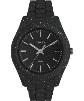 The Timex Mens Legacy Ocean 42mm Watch blends modern sustainability with classic Timex heritage, crafted from upcycled oceanbound plastic to create a lightweight, ecofriendly timepiece with real presence. Its 42mm case and matching bracelet deliver a clean, contemporary silhouette, while the minimalist dialavailable in bold black, deep blue or striking greenkeeps the focus on clarity and everyday versatility. Powered by a reliable quartz movement, it offers dependable accuracy, protected by a mineral glass lens and 30m water resistance for daily wear. The integrated bracelet fits wrists 150205mm, ensuring a secure, comfortable feel. Stylish, durable and environmentally conscious, the Legacy Ocean stands out as a modern statement piece that proves sustainability and design can go hand in hand.