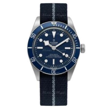 Tudor Black Bay Fifty-Eight Automatic Steel 39 mm watch. Model reference: M79030B-0003. Steel case. One-way rotating steel bezel with 60-minute graduated matte blue anodized aluminum dial with silver-plated markings and numerals. Blue dial. Automatic movement. Blue textile strap with steel pin buckle. Swiss made. Watch comes in original packaging, with set of documents and 2 years warranty. At Watches of Mayfair we offer new authentic watches at the best prices.