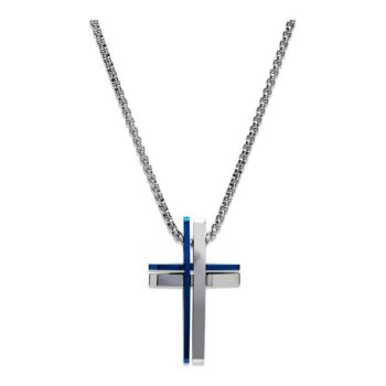 Expertly crafted from high-quality stainless steel, this mens necklace boasts a striking cross pendant adorned with blue IP plating. The pendant hangs on a sleek 50cm chain for a stylish and bold look.