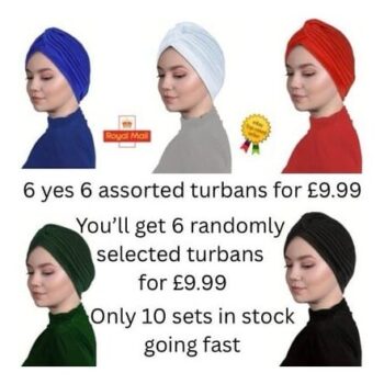 6 Pack Assorted Colours, Womens Stretch Turbans For Sleep, Hair Loss, Fashion