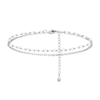 925 Sterling Silver Multilayer Ankle Bracelet with Zircon for Women