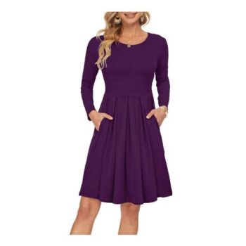 AUSELILY Womens Long Sleeve Pleated Loose Swing Casual Dress