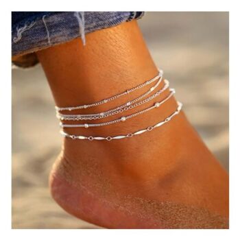 Dainty Silver Anklets Set for Women and Girls, 5 Pcs