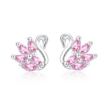 Deyanse Sterling Silver Pink Swan Stud Earrings for Girls, Hypoallergenic