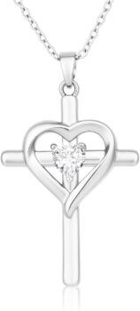 Esmoly Cross Necklace for Women 18K White Gold Plated Necklaces Heart shaped zircon pendant Christian Baptism Religious Gifts for Women Girls 163 Inches (White Gold 04) Prices & promotions subject to change.