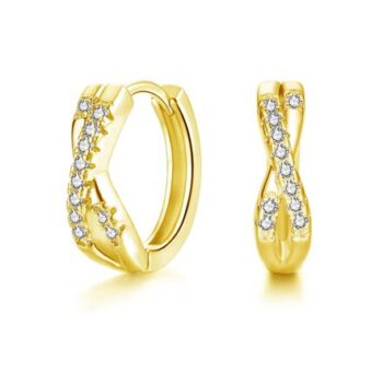 Estrellique Sterling Silver Twisted Hoop Earrings with Cubic Zirconia