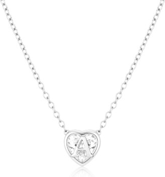 Initial Heart Necklace S925 Sterling Silver Cubic Zirconia Letter A-Z Pendant Tiny Necklace Dainty Jewelry Birthday Gifts for Women Girls-182 inch Sliver Chain