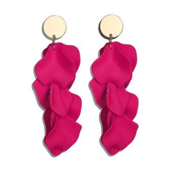 JeryWe Clip-on Acrylic Earrings Women Rose Petal Tassel Boho Pink