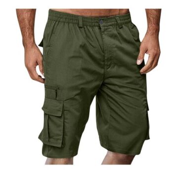 Mens Cargo Shorts, Knee-Length, Multi-Pocket, Elastic Waist, S-5XL