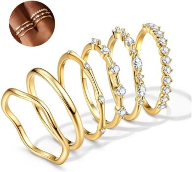 Morfetto Non Tarnish Gold Stacking Rings for Women – 14K Gold Plated Thumb Cubic Zirconia Stackable Rings Set Thin Bands Rings Women Waterproof Wedding Gold Ring Statement Engagement Promise Ring