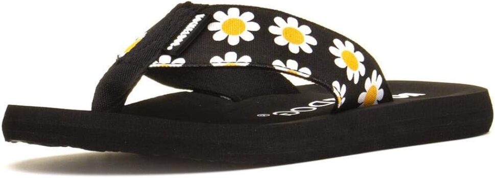 These Adios flip flops from Rocket Dog feature a daisy field printed upper on eva bottom. These flip flops are the ideal addition for the casual sandals in your closet. With a comfortable eva sole, and printed thong, these flip flops compliment any outfit ideally.