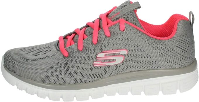 Easily transition from the gym to all day comfort wear with the SKECHERS Graceful – Get Connected shoe. Skech Knit Mesh one piece sporty fabric upper in a lace up athletic training sneaker with stitching and overlay accents. Memory Foam insole.