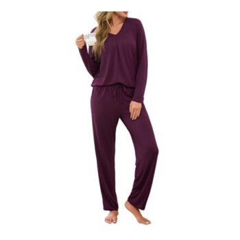 Uniexcosm Womens Wine Red Long Sleeve Pyjamas Set S-3XL
