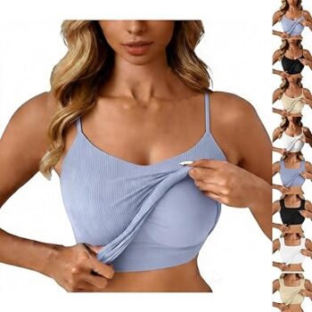 Vest Top with Built in Padded Bra UK V Neck Ribbed Tank Tops with Adjustable Spaghetti Strap Sleeveless Slim fit Casual Camisole Tees Soft Y2k Cropped Shirts for Yoga Sleeping
