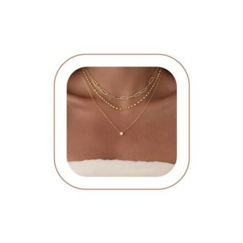 VIROMY 14k Gold-Plated Zircon Pendant Paperclip Chain Necklace