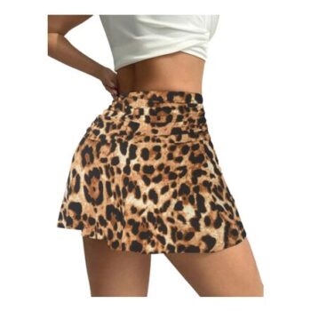 Womens Leopard Print High-Waisted Mini Skirt for Streetwear