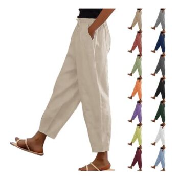 Womens plus Size Cotton Linen Wide Leg Cropped Pants