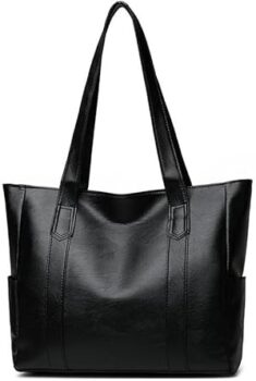 YXQSED Ladies Tote Womens Bags Shoulder Handbag Simple PU Leather Top Handle Handbags Work School Shopping Bags for Women with Zip and Inner Pocket(Black)