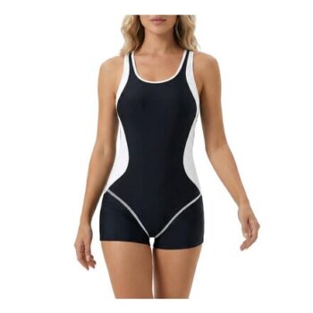 Zidoley Womens Tummy Control One-Piece Boyleg Swimsuit with Shorts Black